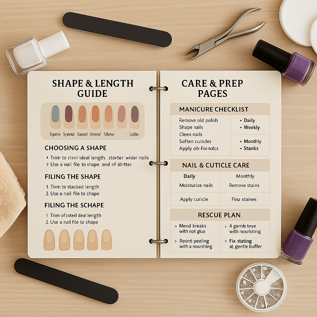 Master the key elements of nail design with Nail Art Notes Worksheets. These pages help you plan your looks, track results, and refine what works best for your style. From nail preparation and polish layering to color blending and finish perfection – you’ll have everything you need to stay consistent, avoid mistakes, and create your best nail art yet. It’s time to design your goals the simple way.